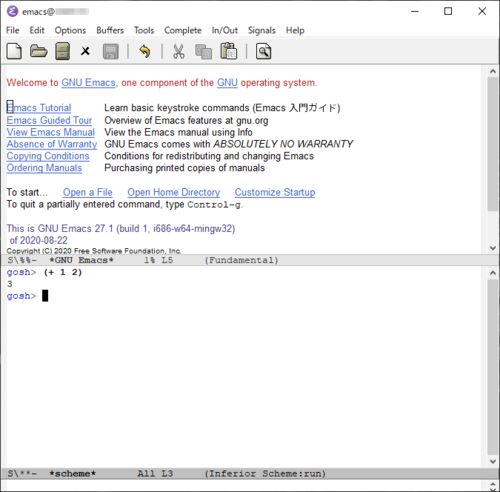 Gauche(Scheme)を練習するために、Windows10でEmacsを使ってみたら、Emacsの設定ファイルを置く場所が分かりませんでした。 Emacsの本を読んだら、Emacsの設定ファイルを置くホームディレクトリの場所が分かりました。 [改訂新版]Emacs実践入門―思考を直感…